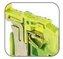 Особое преимущество данных клемм – в безвинтовом креплении проводников: используются подпружиненные контакты. Подвод проводника осуществляется сверху клеммы. Для отсоединения проводника необходимо нажать отверткой на пружину через отверстие, расположенное сверху клеммы. Рассчитаны на применение в цепях переменного тока с напряжением до 800 В и частотой 50 Гц. Клеммы изготавливаются из огнестойкого полиамида следующих цветов: серый, синий, желто-зеленый (земля). Дополнительно к клеммам выпускаются боковые заглушки для закрытия контактов конечной клеммы, перемычки для разветвления проводников, маркеры и др.