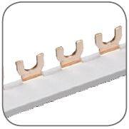 Шины соединительные представляют собой пластины, выполненные из меди (шины на 100 А – из луженой меди), закрепленные в корпусе из диэлектрического материала, не поддерживающего горение, и выпускаются стандартной длиной 1 метр. Шины соединительные делятся на два типа - FORK («вилка») и PIN («гребенка») на номинальные токи 63 и 100 А. Могут быть выполнены в одно- двух- трех- и четырехполюсном исполнений.